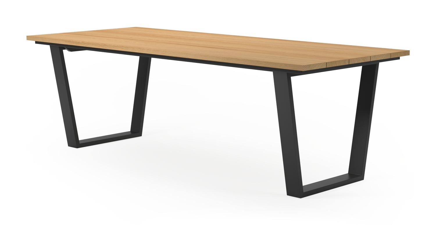 Een tafelblad uit teak staat gelijk aan bijzondere kwaliteit en natuurlijk design. Teak is een kwalitatieve houtsoort gekenmerkt door zijn hardheid. Aangezien hout leeft, kan de structuur of kleur licht anders zijn dan op het beeld weergegeven.
