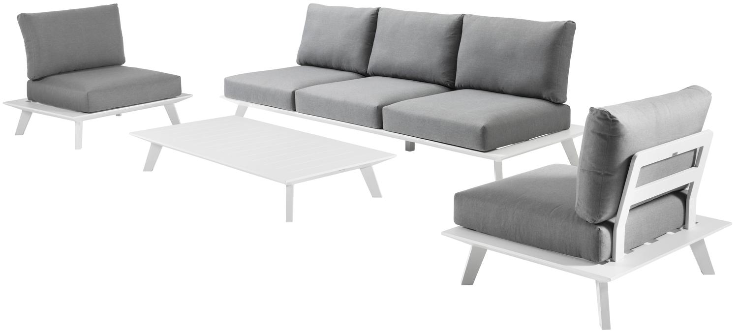 De Puglia loungeset in wit aluminium met grijs weather+ softtouch kussens en loungetafel is van het merk Bristol Essentials en is hier verkrijgbaar in de kleur wit/grijs.