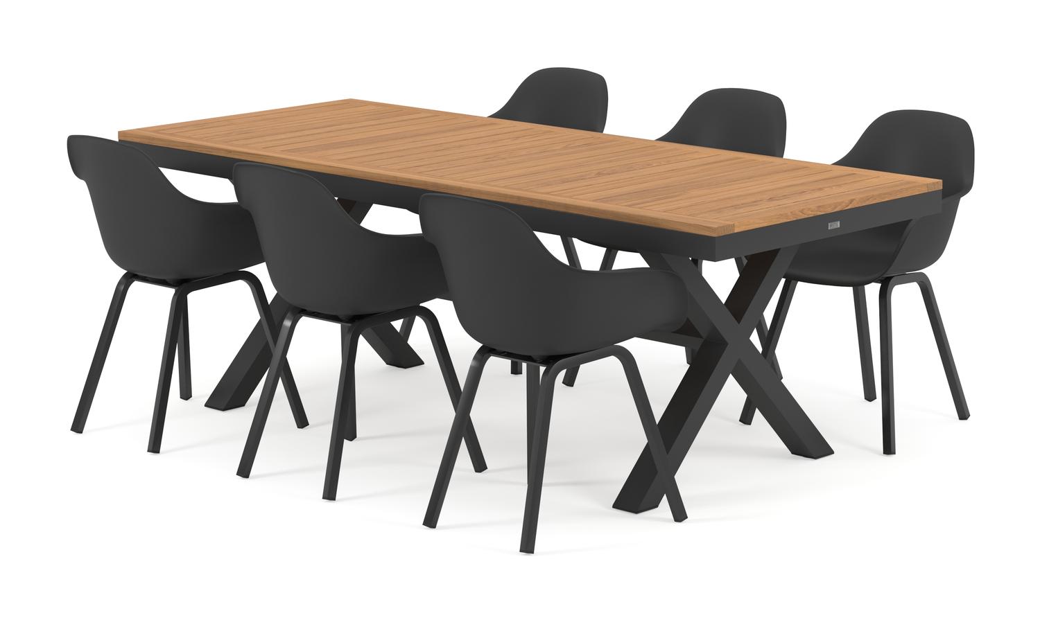 De Reza tuinset in zwart aluminium en teak tafelblad met 6 Puglia tuinstoelen is van het merk Bristol Essentials en is hier verkrijgbaar in de kleur zwart/naturel.