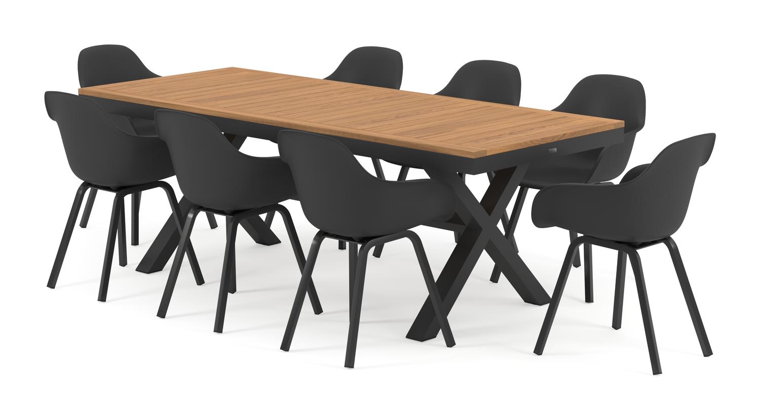 De Reza tuinset in zwart aluminium en teak tafelblad met 8 Puglia tuinstoelen is van het merk Bristol Essentials en is hier verkrijgbaar in de kleur zwart/naturel.