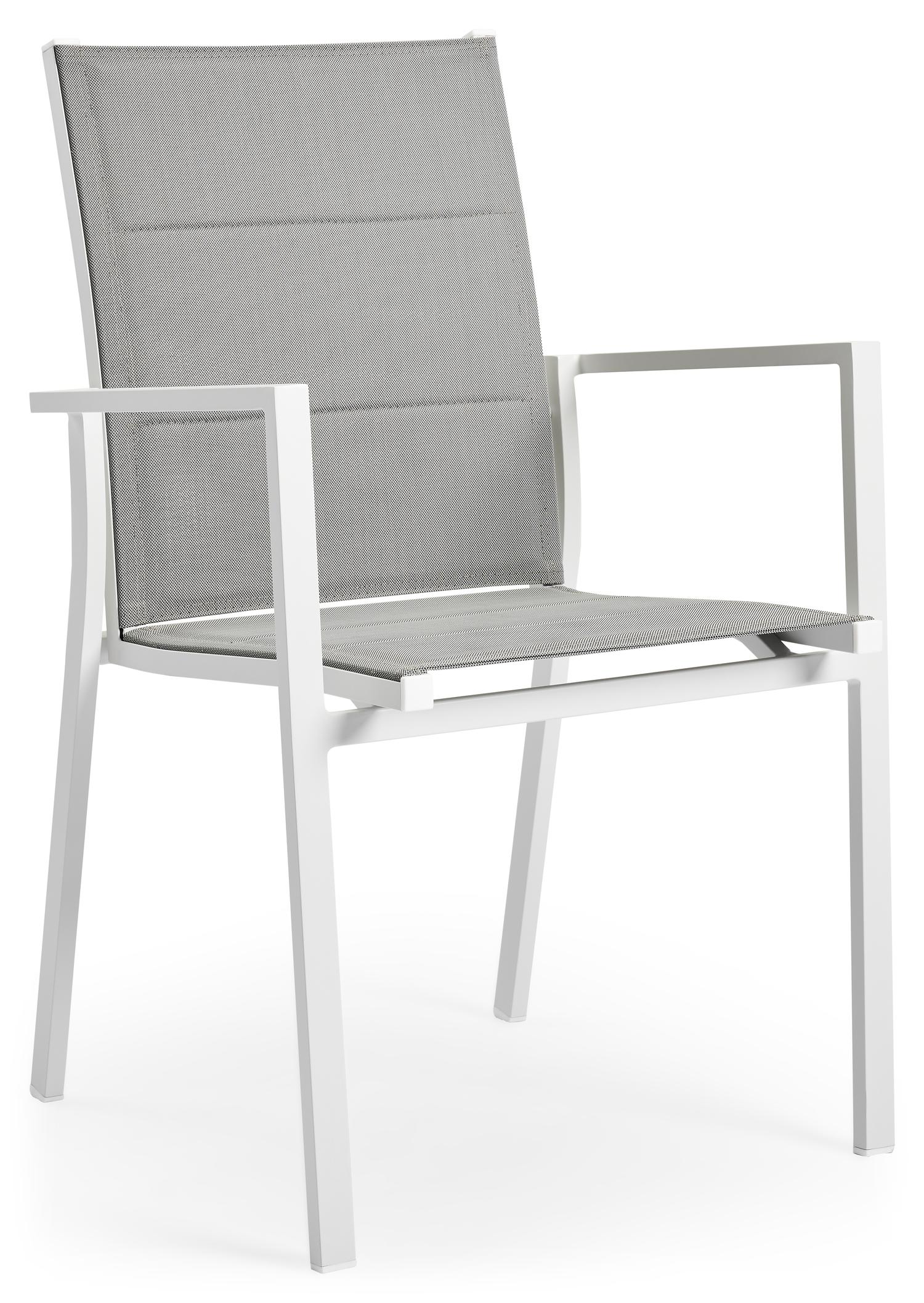 De Rimini stapelbare tuinstoel in wit aluminium en grijs textilene is van het merk Bristolà la carte en is hier verkrijgbaar in de kleur grijs.