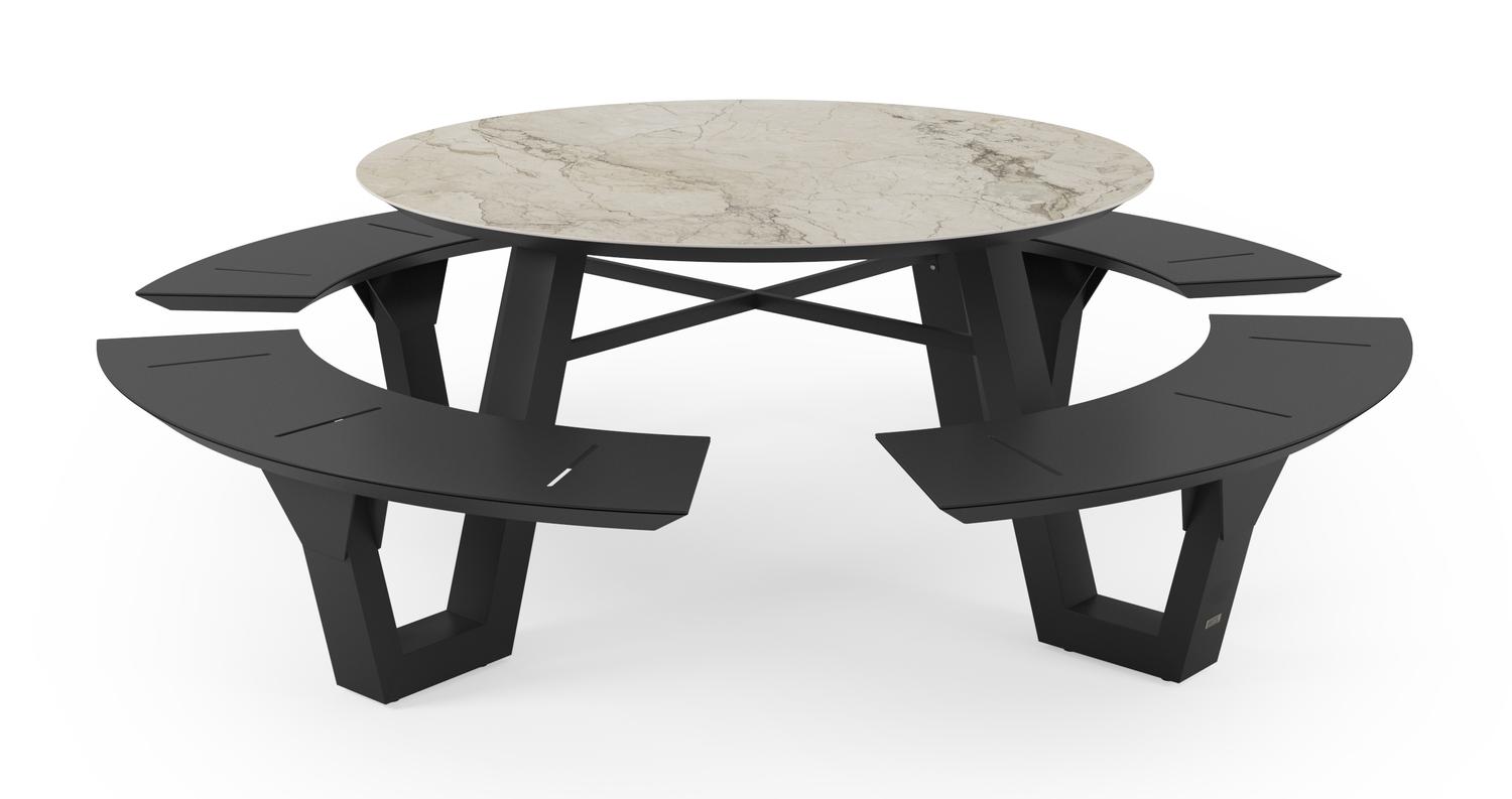 De Rondino picknicktafel in zwart aluminium en volkeramiek colorado dunes tafelblad – Dia. 236 x H 71,5 cm is van het merk Bristolà la carte en is hier verkrijgbaar in de kleur zwart/beige.