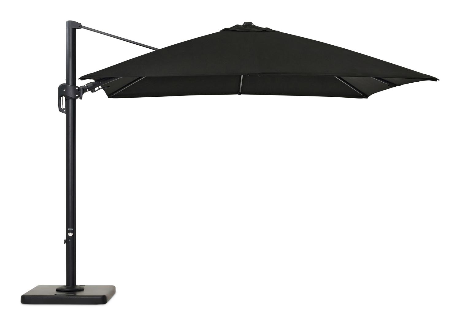 De Rufina zweefparasol met tiltfunctie in zwart aluminium met zwart all weather sunbrella® premium parasoldoek – L1 300 x L2 300 cm (met voet) is van het merk Bristolà la carte en is hier verkrijgbaar in de kleur zwart.