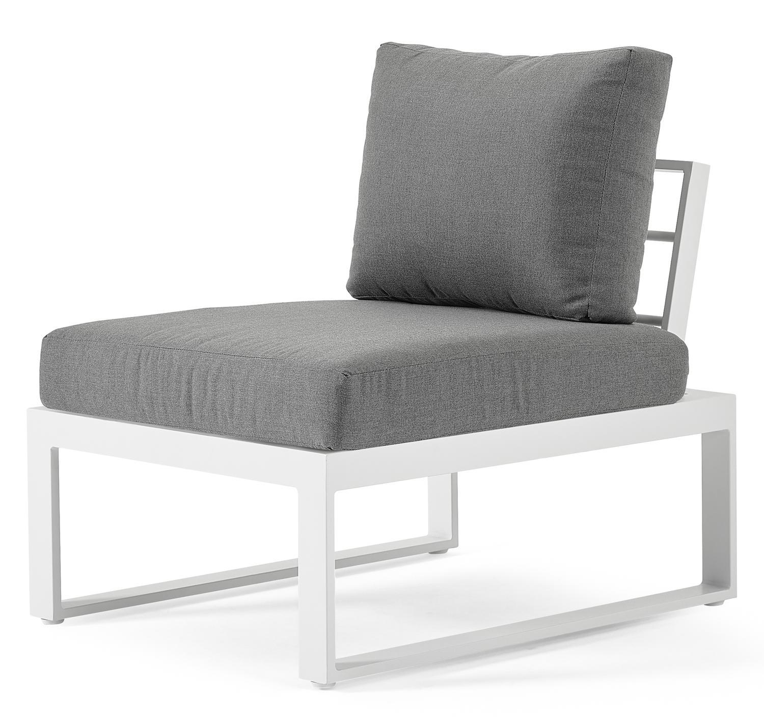 De Serado loungestoel tussenstuk in wit aluminium met grijs polyester kussen is van het merk Vinci en is hier verkrijgbaar in de kleur grijs/wit.