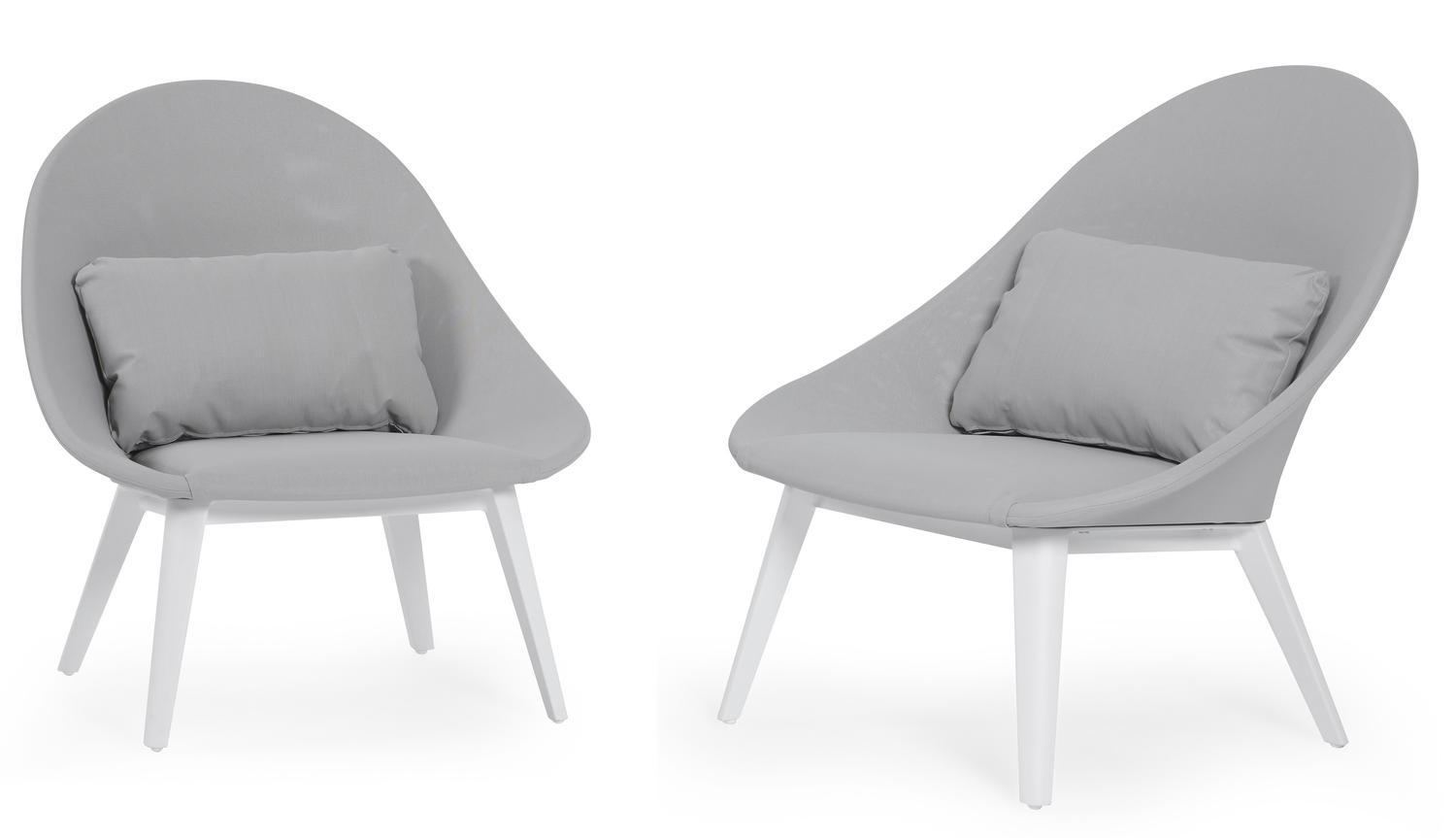 De Set van 2 Cesano loungestoelen 2 x 1-zit in wit aluminium en grijs textileen met grijs all weather sunbrella® luxe kussen is van het merk Bristolà la carte en is hier verkrijgbaar in de kleur grijs/wit.