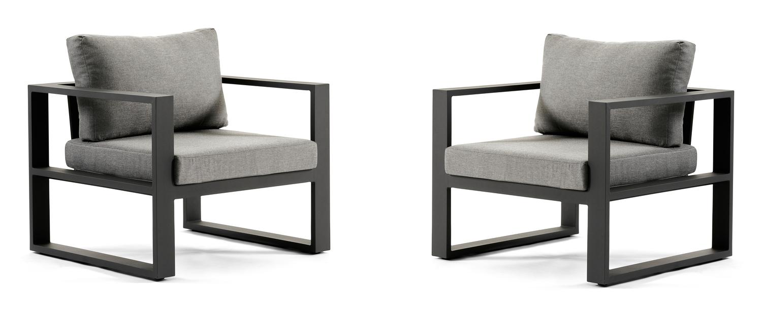 Set van 2 Livo loungestoelen 2 x 1-zit in zwart aluminium met grijs weather+ softtouch kussen