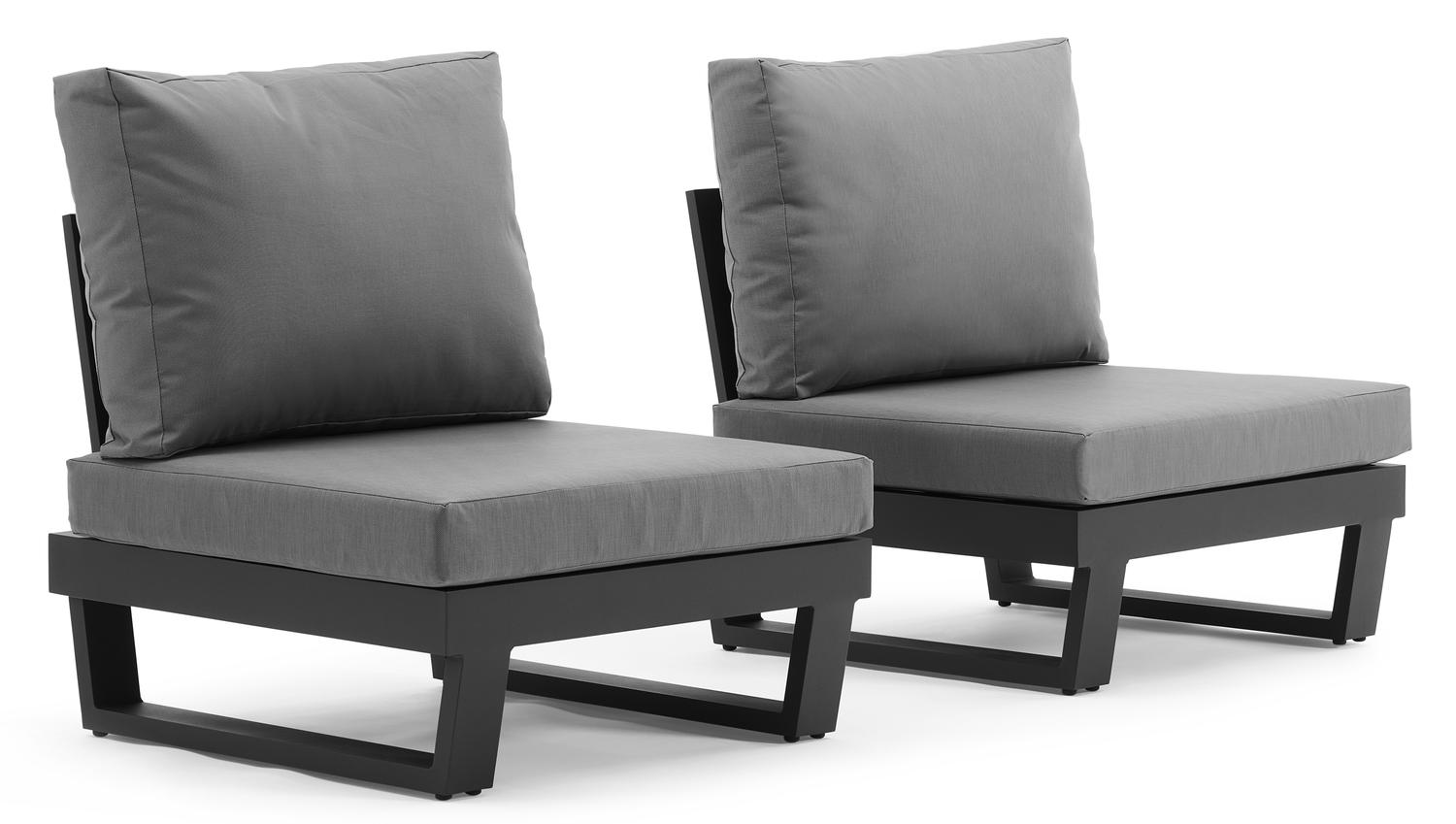 De Set van 2 Modica loungestoelen 2 x 1-zit in zwart aluminium met grijs textilene kussen is van het merk Bristol Essentials en is hier verkrijgbaar in de kleur zwart/grijs.