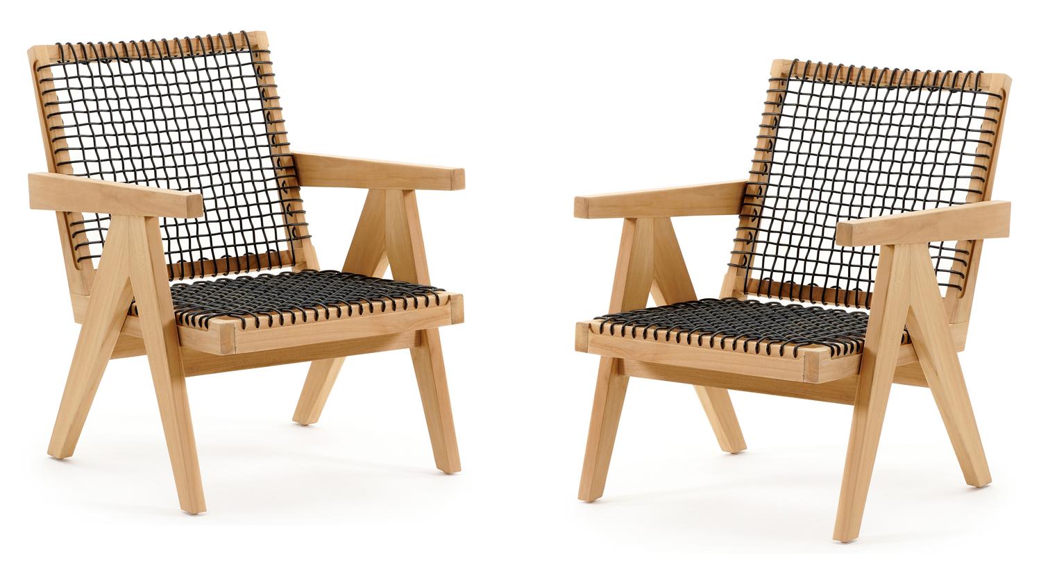 De Set van 2 Trentino loungestoelen 2 x 1-zit in teak en ronde wicker is van het merk Bristolà la carte en is hier verkrijgbaar in de kleur naturel/zwart.