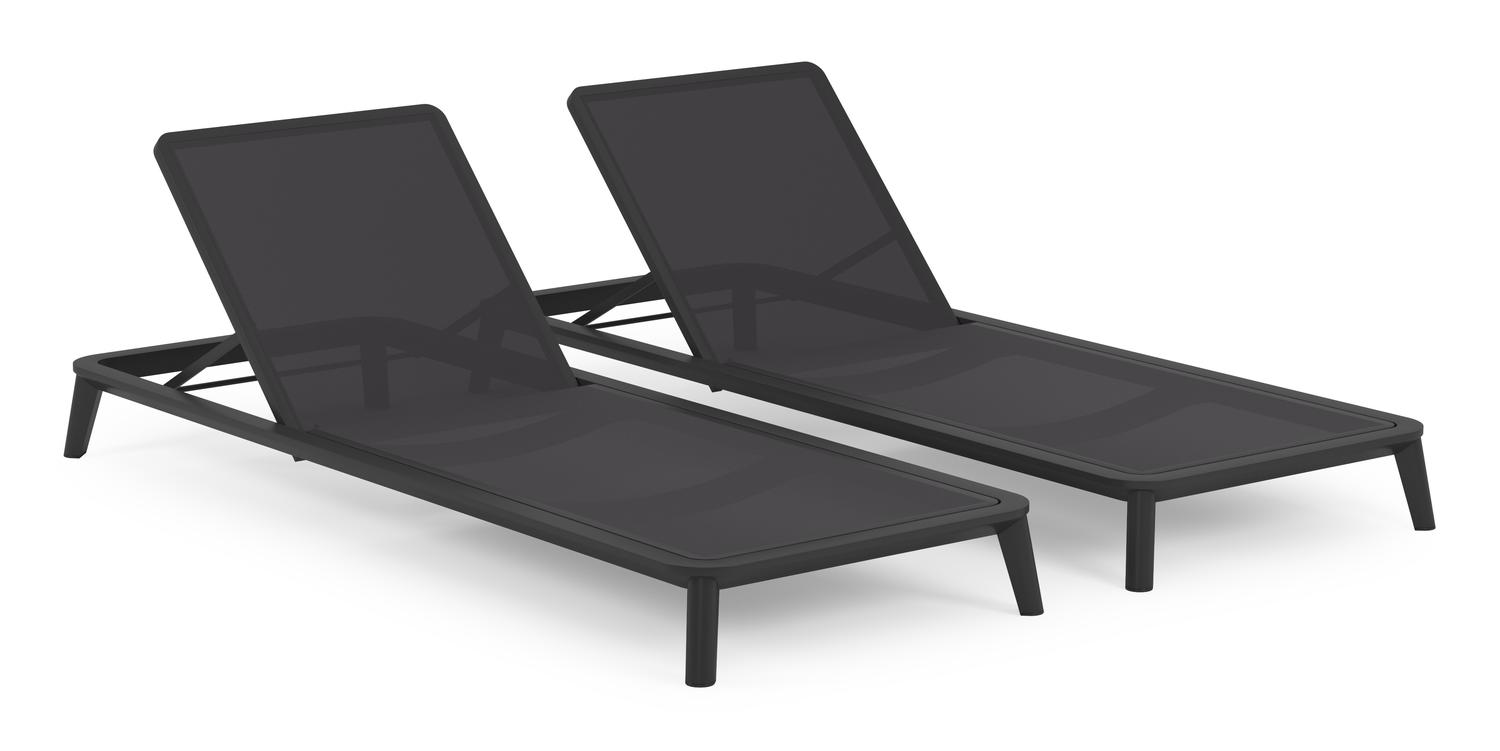 Productomschrijving Set van 2 verstelbare Mosa ligbedden in zwart aluminium en zwart single textileen