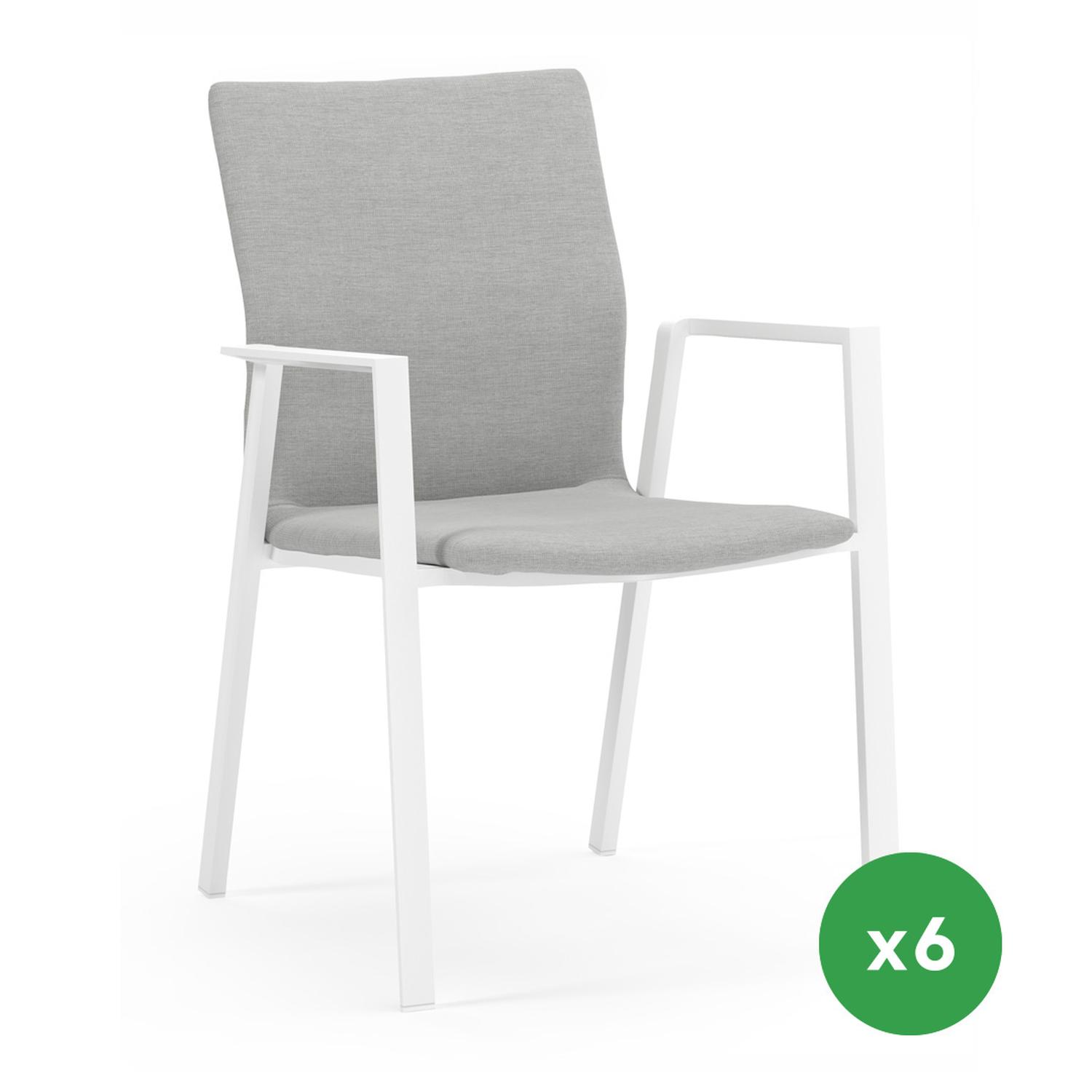 De Set van 6 Madura stapelbare tuinstoelen in wit aluminium en comfort textilene is van het merk Bristol Essentials en is hier verkrijgbaar in de kleur wit/grijs.