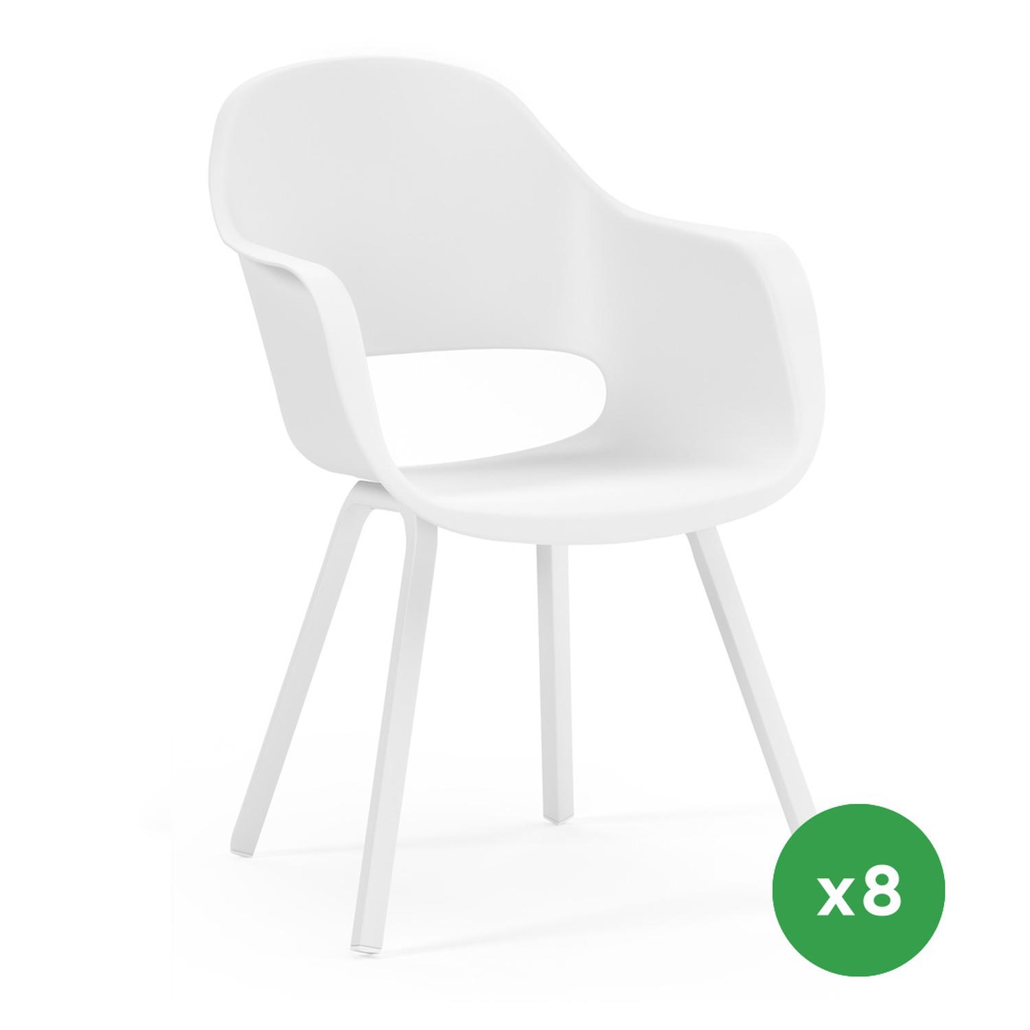 Set van 8 Artena tuinstoelen in wit aluminium en kunststof