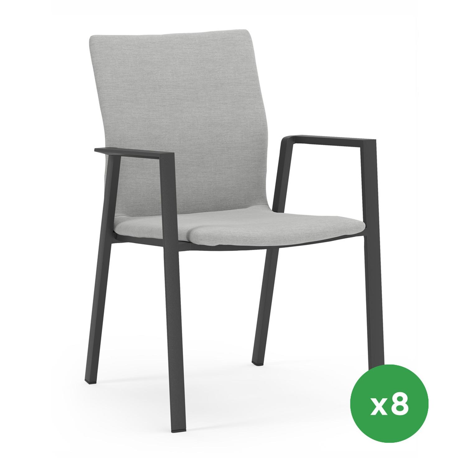 Set van 8 Madura stapelbare tuinstoelen in zwart aluminium en comfort textilene
