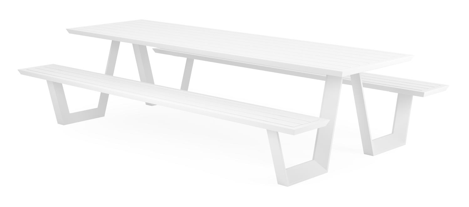 De Sevilla picknicktafel in wit aluminium – L 280 x B 175,5 x H 71 cm is van het merk Bristolà la carte en is hier verkrijgbaar in de kleur wit.