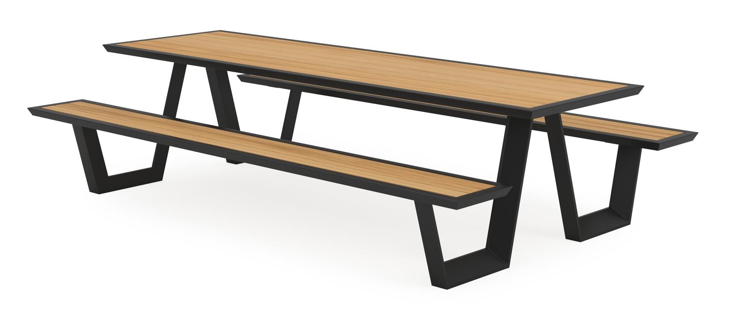 De Sevilla picknicktafel in zwart aluminium en teak tafelblad – L 280 x B 175,5 x H 71 cm is van het merk Bristolà la carte en is hier verkrijgbaar in de kleur zwart/naturel.
