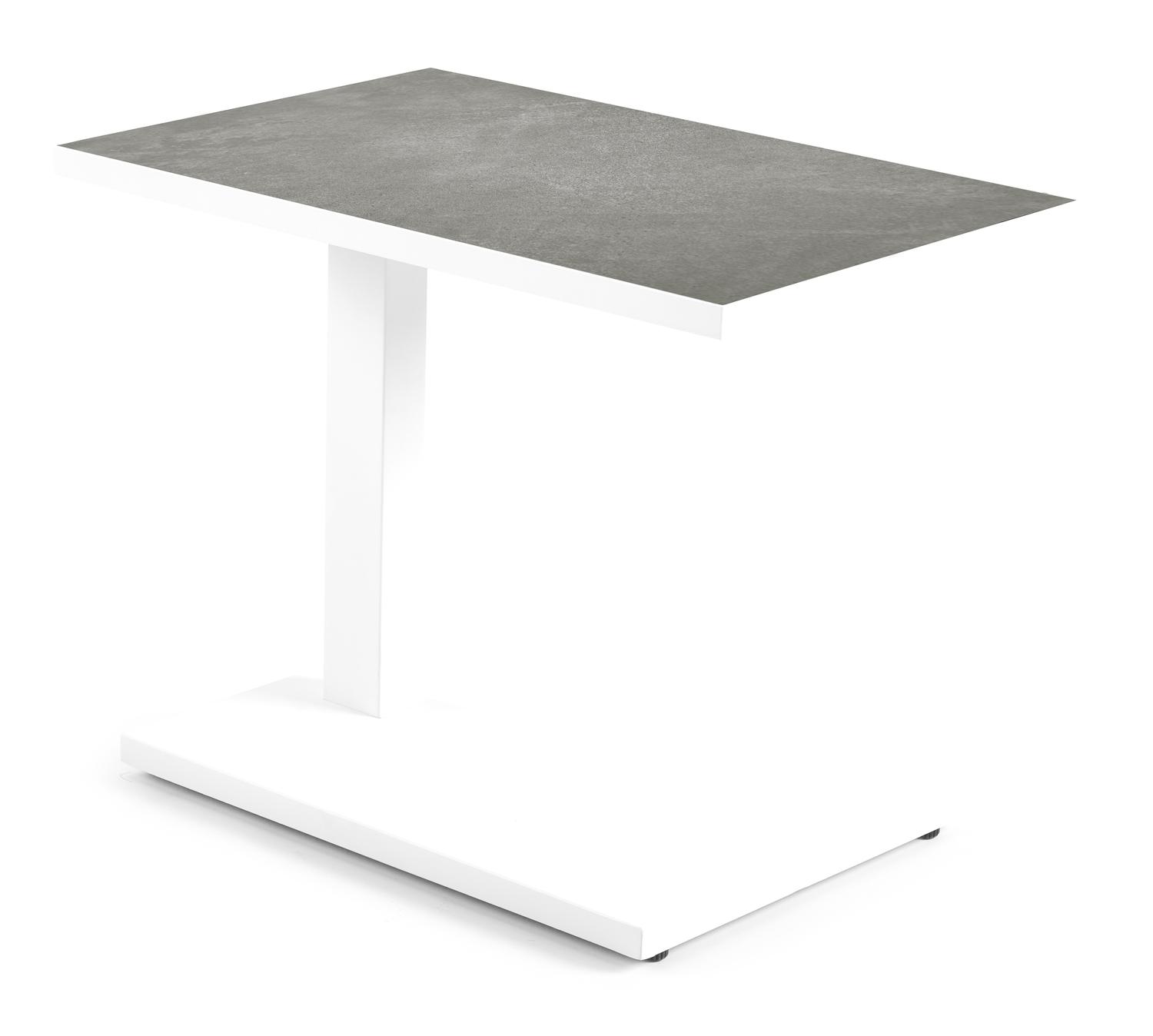 Productomschrijving Talana bijzettafel in wit aluminium en grijs volkeramiek – L 60 x B 40 x H 47/67,50