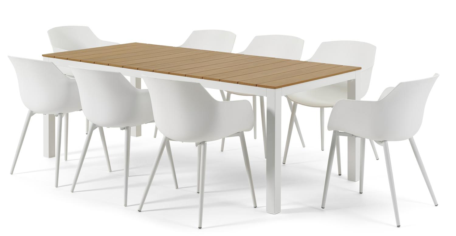 De Toma tuinset in wit aluminium en polywood tafelblad met 8 Paco tuinstoelen is van het merk Vinci en is hier verkrijgbaar in de kleur naturel/wit.