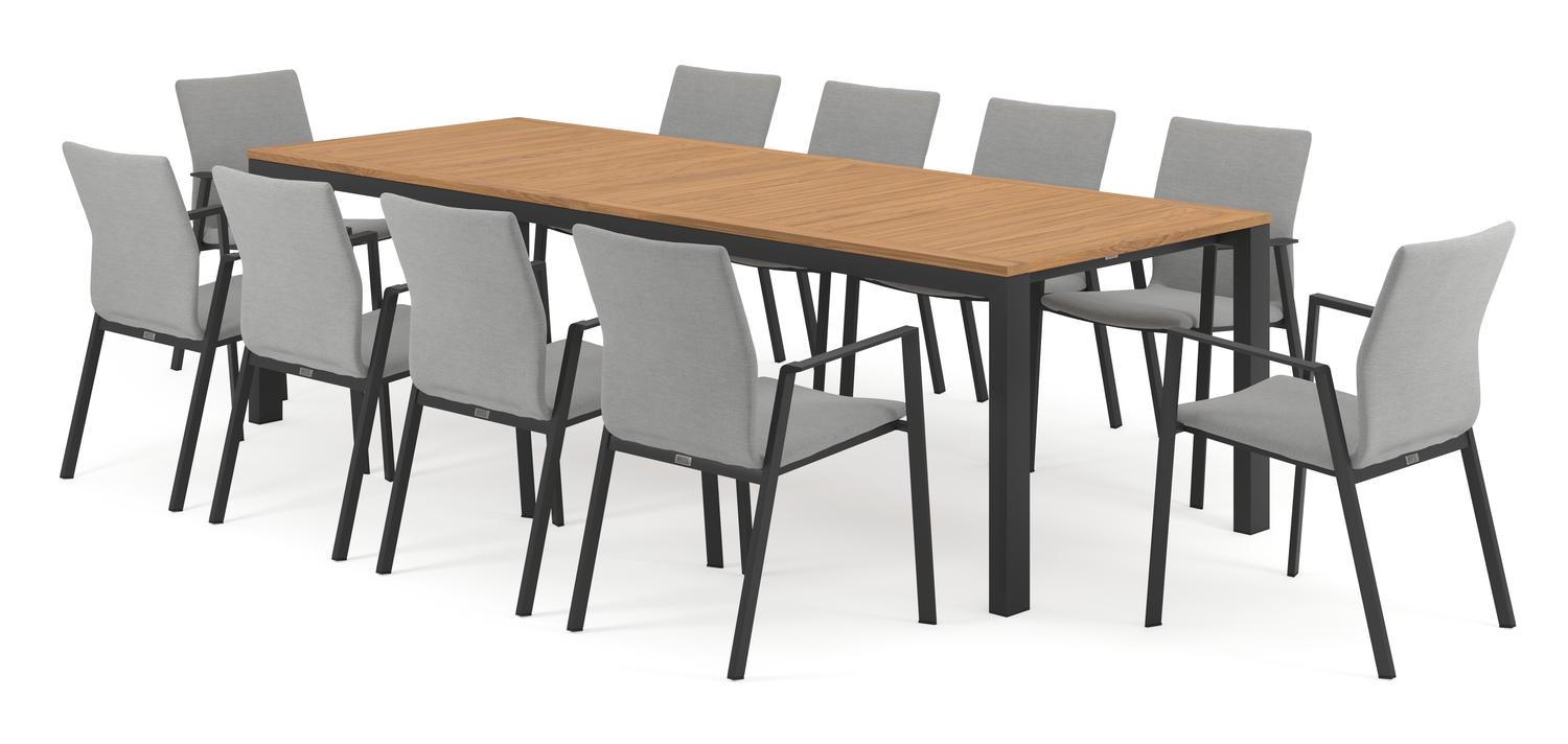 Trente tuinset in zwart aluminium en teak tafelblad met 10 stapelbare Madura tuinstoelen