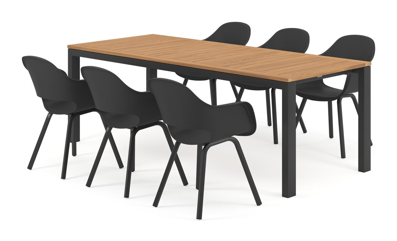 De Trente tuinset in zwart aluminium en teak tafelblad met 6 Artena tuinstoelen is van het merk Bristol Essentials en is hier verkrijgbaar in de kleur zwart/naturel.