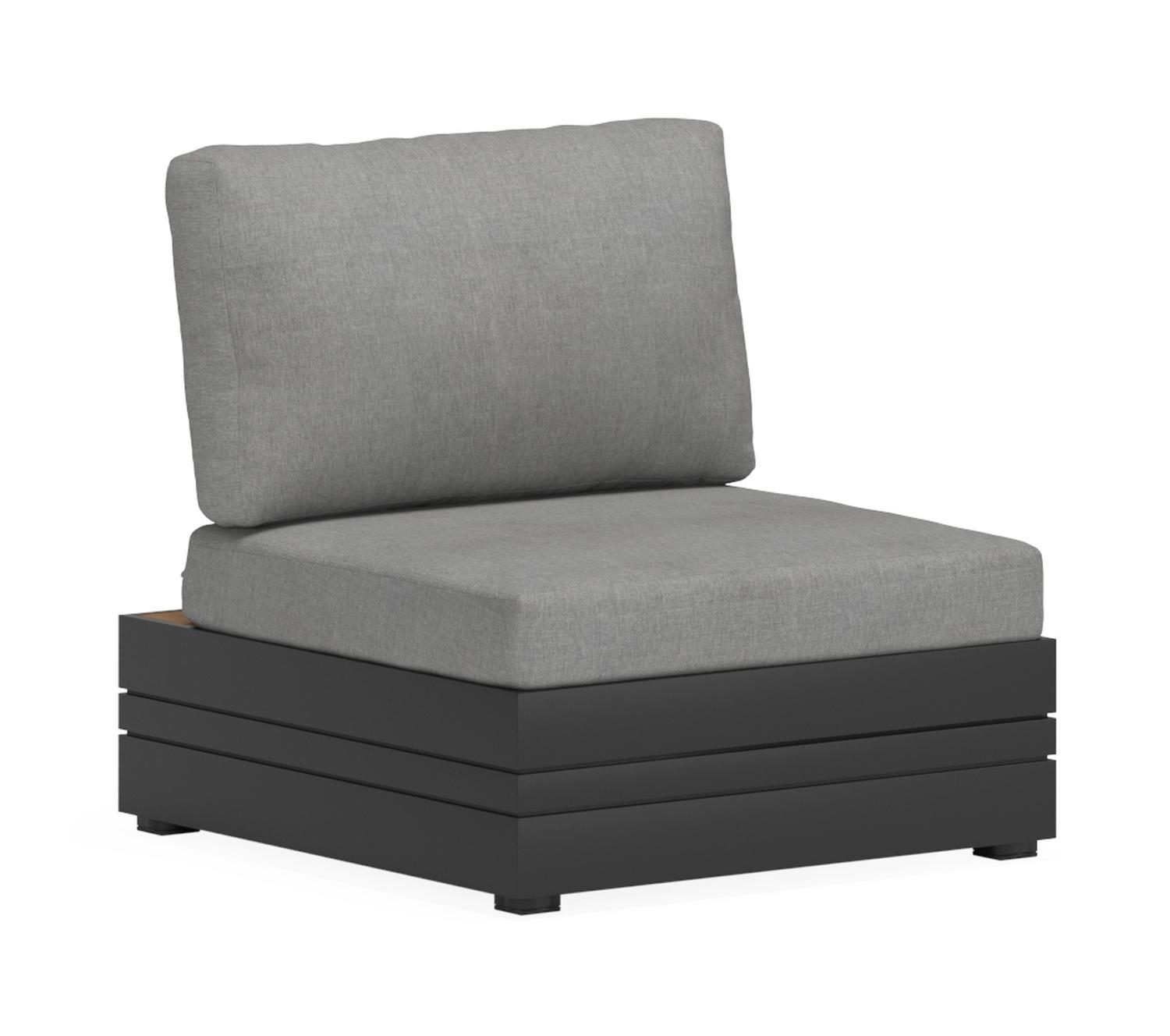 Productomschrijving Valongo loungestoel in zwart aluminium en polywood met grijs polyester kussen