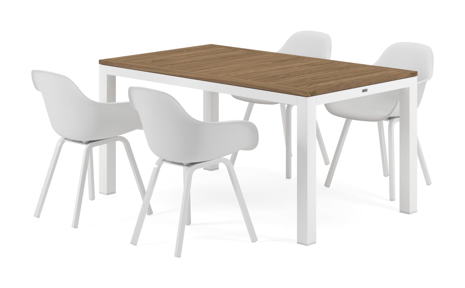 Varese tuinset in wit aluminium en colour finish teak tafelblad met 4 Puglia tuinstoelen