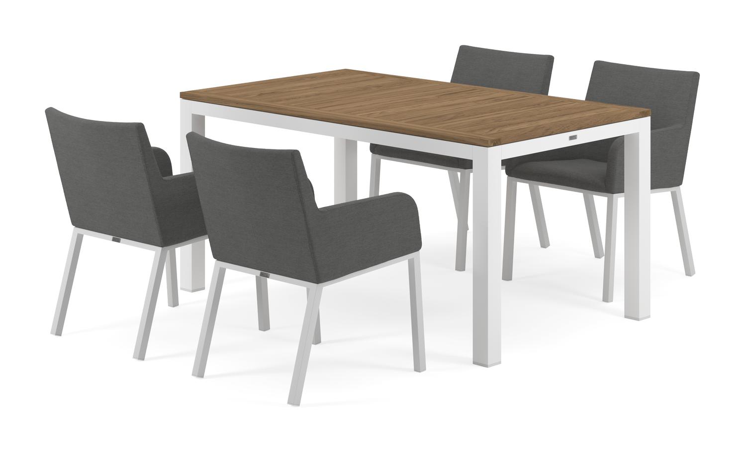 De Varese tuinset in wit aluminium en colour finish teak tafelblad met 4 Rivo tuinstoelen is van het merk Bristol Essentials en is hier verkrijgbaar in de kleur grijs/naturel/wit.