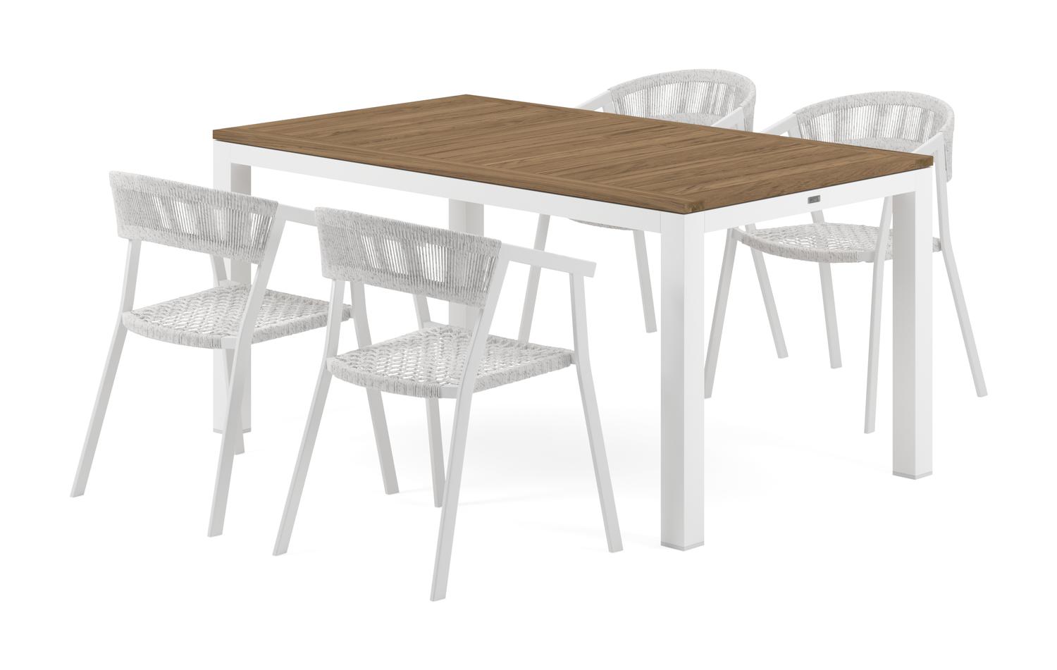 De Varese tuinset in wit aluminium en colour finish teak tafelblad met 4 stapelbare Viaro tuinstoelen is van het merk Bristol Essentials en is hier verkrijgbaar in de kleur naturel/wit.