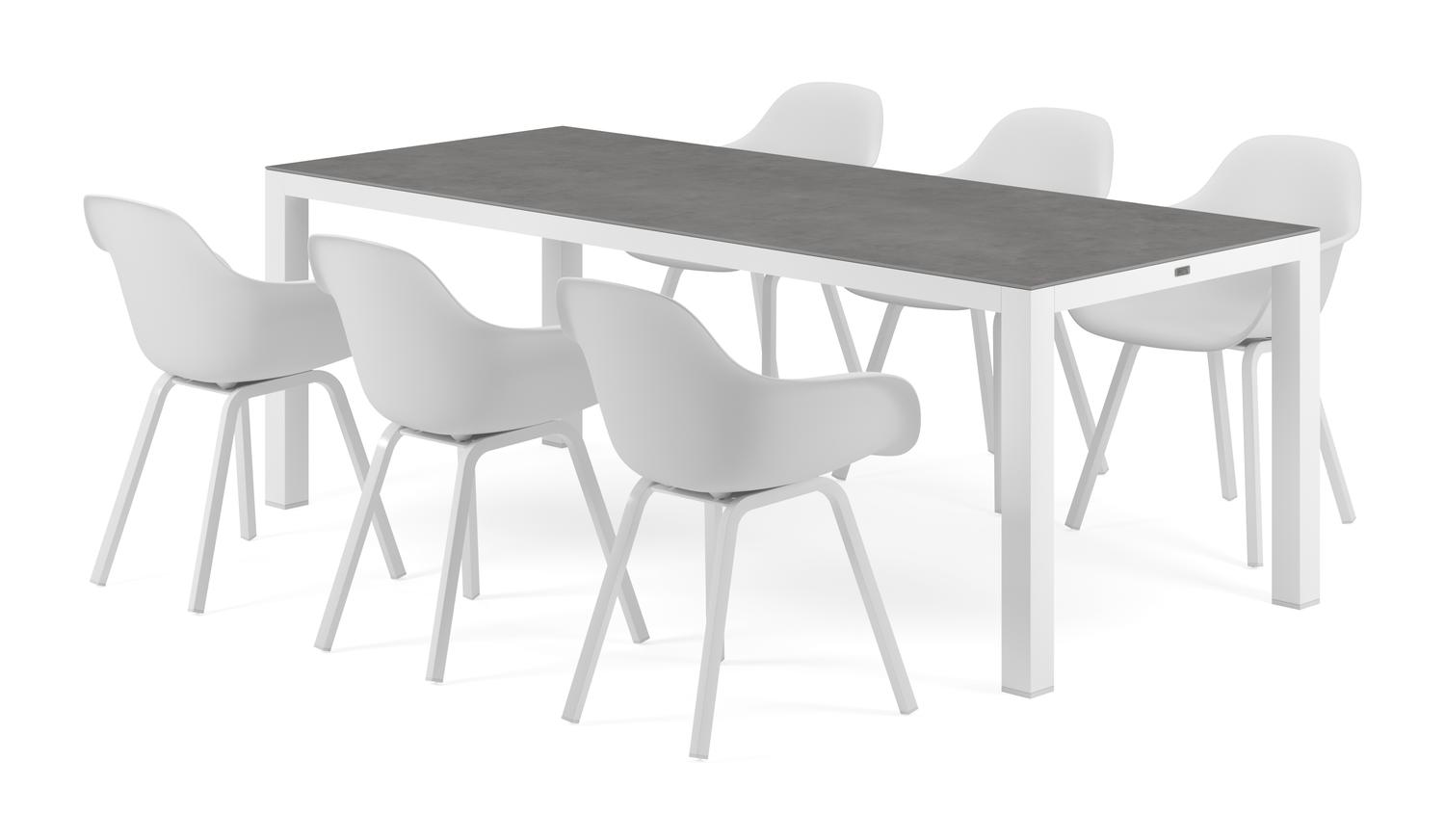 De Varese tuinset in wit aluminium en grijs volkeramiek tafelblad met 6 Puglia tuinstoelen is van het merk Bristol Essentials en is hier verkrijgbaar in de kleur grijs/wit.