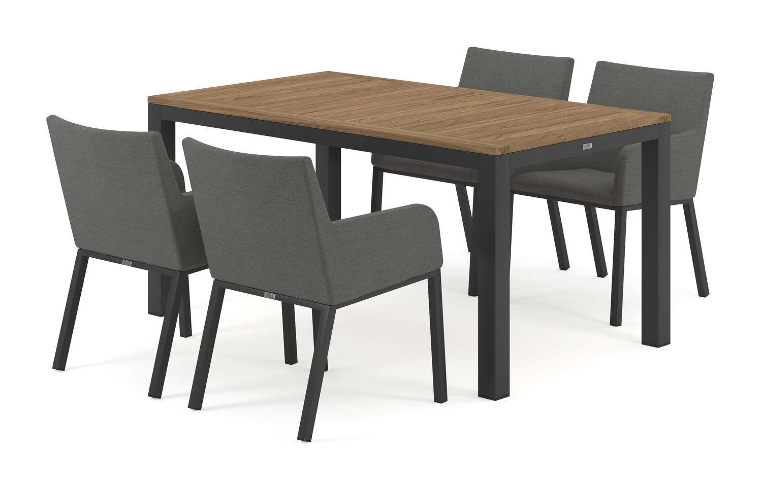 De Varese tuinset in zwart aluminium en colour finish teak tafelblad met 4 Rivo tuinstoelen is van het merk Bristol Essentials en is hier verkrijgbaar in de kleur zwart/naturel/grijs.