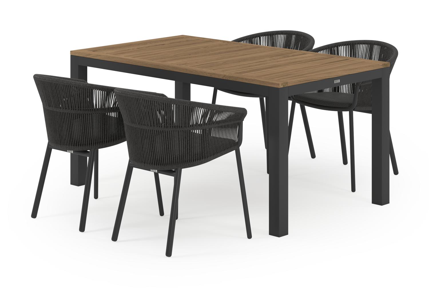 De Varese tuinset in zwart aluminium en colour finish teak tafelblad met 4 stapelbare Matera tuinstoelen is van het merk Bristol Essentials en is hier verkrijgbaar in de kleur zwart/naturel.