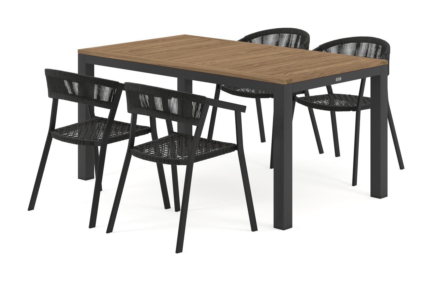 De Varese tuinset in zwart aluminium en colour finish teak tafelblad met 4 stapelbare Viaro tuinstoelen is van het merk Bristol Essentials en is hier verkrijgbaar in de kleur zwart/naturel.