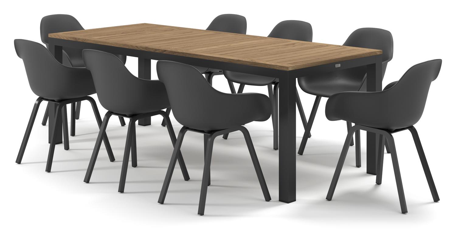 De Varese tuinset in zwart aluminium en colour finish teak tafelblad met 8 Puglia tuinstoelen is van het merk Bristol Essentials en is hier verkrijgbaar in de kleur zwart/naturel.