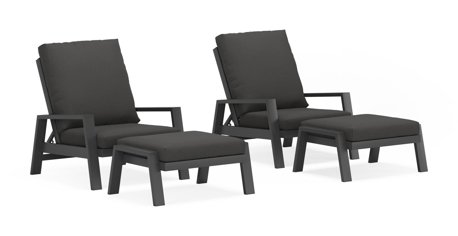 Veneto loungeset in zwart aluminium met natte sooty all weather sunbrella® premium kussens