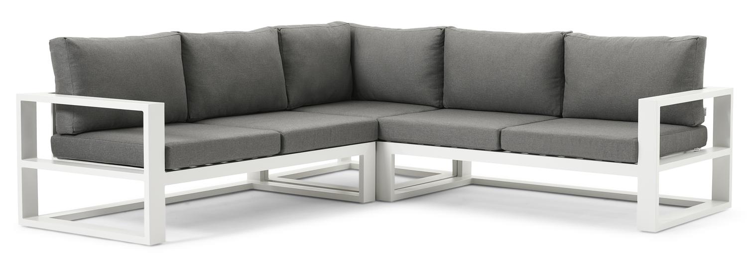 De Verato loungeset in wit aluminium met grijs Weather+ Softtouch kussens is van het merk Bristolà la carte en is hier verkrijgbaar in de kleur grijs/wit.