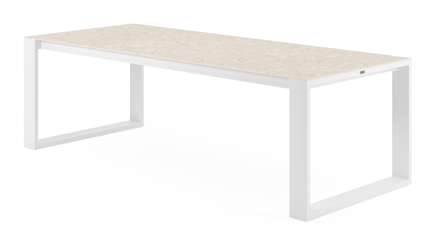 De Verato tuintafel rechthoekig in wit aluminium en volkeramiek retrostone – L 240 x B 100 x H 73.5 cm is van het merk Bristolà la carte en is hier verkrijgbaar in de kleur wit/beige.