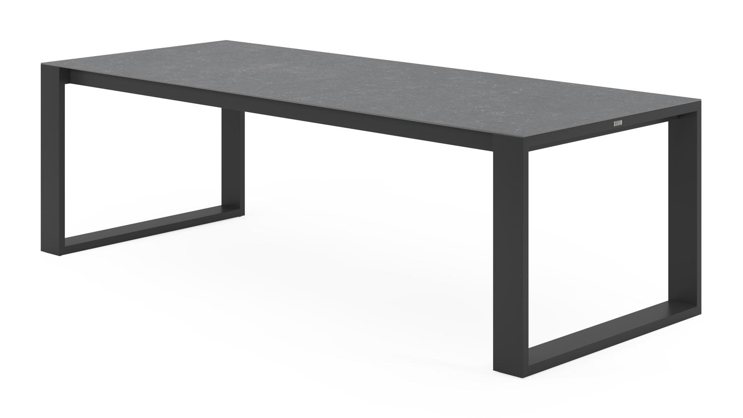 Productomschrijving Verato tuintafel rechthoekig in zwart aluminium en volkeramiek pierre bleue – L 240 x B 100 x H 75 cm