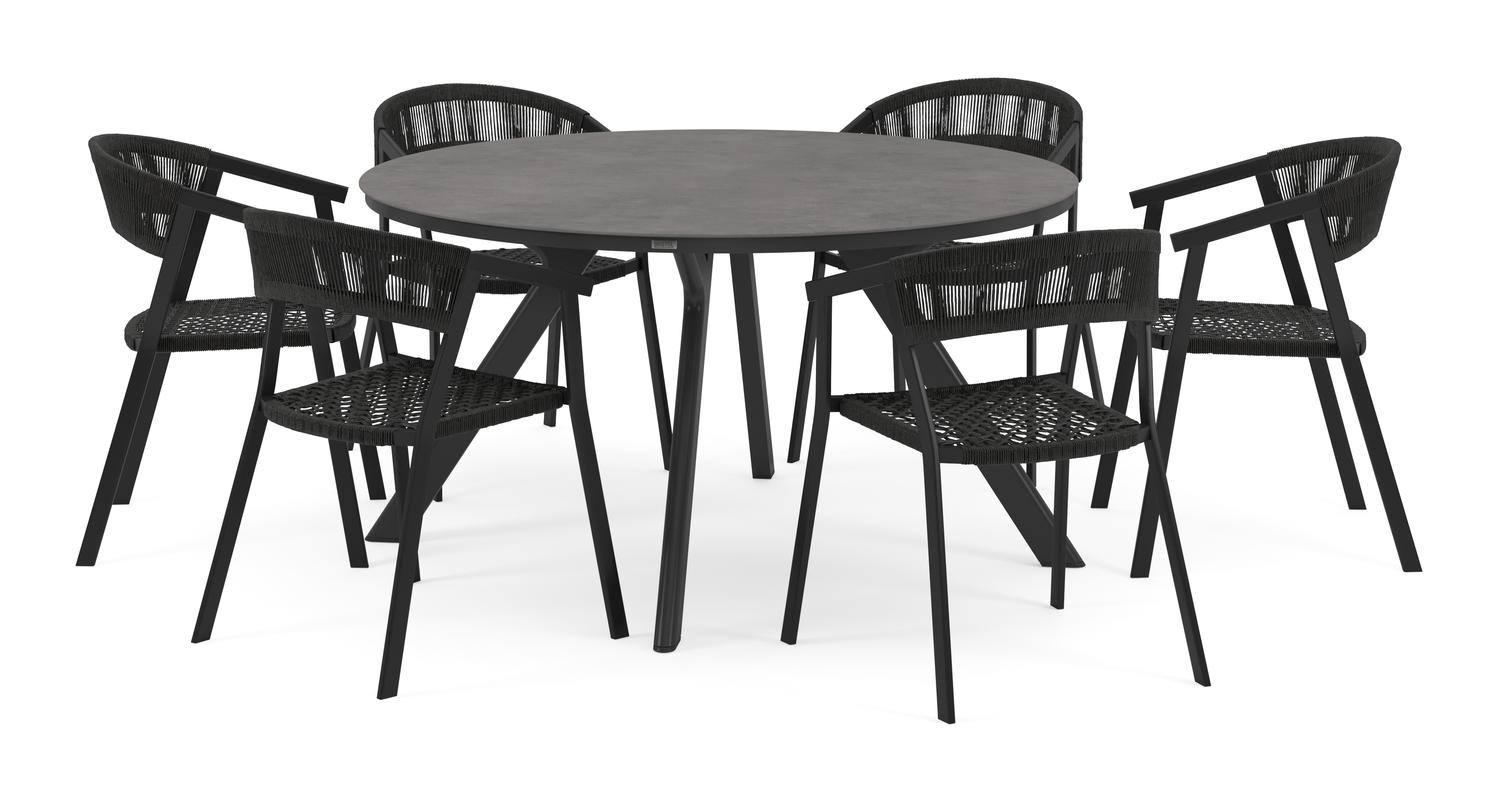 De Viaro tuinset in zwart aluminium en grijs volkeramiek tafelblad met 6 stapelbare Viaro tuinstoelen is van het merk Bristol Essentials en is hier verkrijgbaar in de kleur zwart/grijs.