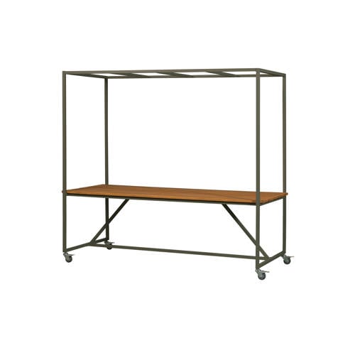 Artikelkenmerken-Outdoor eettafel op wielenInclusief decoratief metalen frame-Vervaardigd uit eucalyptus hout-H 200 cm x B 220 cm x D 97 cmDeze unieke eettafel komt uit de collectie van het merk VTwonen. De eettafel, vervaardigd uit eucalyptus hout, heeft een decoratieve metalen frame die boven het tafelblad hangt. Hiermee kan je jouw tuin extra flair geven door er bijvoorbeeld gezellige sfeerlampjes of planten aan te hangen! Door de wielen, die vast zitten aan het metalen frame, is de eettafel makkelijk te verplaatsen. De wielen aan deze eettafel kunnen worden vastgezet, waardoor het niet beweegt wanneer er wordt getafeld.OutdoorBescherm de meubelen tegen harde regenval, nachtvorst en de winterperiode met een plasticfolie of beschermhoes. Indien mogelijk is het beter dat de meubelen binnenshuis overwinteren.MateriaalEucalyptus hout staat bekend om zijn crème kleur met rose- tot paarsachtige nuances. Dit slijtvaste houtsoort komt oorspronkelijk uit goed beheerde bossen. Eucalyptus hout is zeer sterk en één van de hardere houtsoorten. Bovendien heeft dit hout een lange levensduur. Met regelmatig onderhoud kun je er jarenlang van genieten en kun je de volledige schoonheid van het hout behouden.AfmetingenHoogte: 200 cmBreedte: 220 cmDiepte: 97 cmPoothoogte: 71 cmPootbreedte: 207 cmPootdiepte: 91 cmTafelblad dikte: 2,5 cmHoogte wiel: 10 cmGewicht: 63 kgOnderhoudDe hoeveelheid onderhoud die nodig is voor dit buitenmeubel is direct gerelateerd aan de hoeveelheid blootstelling aan het weer. Eucalyptus meubelen zijn in de fabriek voorgeolied, maar er wordt sterk afgeraden om ze aan weersinvloeden bloot te stellen. Zonder bescherming kan het meubel scheuren, oppervlaktescheurtjes krijgen en/of kleur verliezen. Bescherming: Breng twee of drie keer per jaar een blanke houtoliecoating aan. In situaties van volledige blootstelling aan het weer wordt aangeraden om olie met ingebouwde UV-bescherming te gebruiken en om de drie maanden opnieuw te coaten. In perioden met extreme weersomstandigheden is het aan te raden het onderhoud te intensiveren.LeveringHet artikel wordt geleverd in één pakket met een minimale afname van één stuk. Het artikel is eenvoudig te monteren aan de hand van de bijgeleverde montagehandleiding.